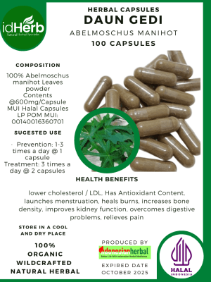 100 Capsule Of Abelmoschus manihot, Daun Gedi, Sunset Hibiscus @600mg for Health All Fresh Natural Herbs spices Indonesian herb Organic Wild Crafted Free Shipping