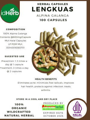 100 Capsule Of Alpina Galanga / Siamese ginger / Thai ginger / galangal / Lengkuas @600mg for Health All Fresh Natural Herbs spices Indonesian herb Organic Wild Crafted Free Shipping