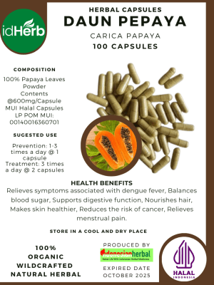 100 Capsule Of Carica Papaya Pawpaw Daun Pepaya Papaya Leaves @600mg for Health All Fresh Natural Herbs spices Indonesian herb Organic Wild Crafted Free Shipping