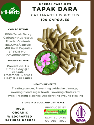 100 Capsule Of Catharanthus roseus, Tapak Dara, Periwinkle, Annual Vinca @600mg for Health All Fresh Natural Herbs spices Indonesian herb Organic Wild Crafted Free Shipping