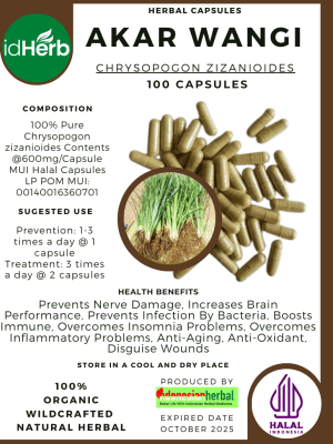 100 Capsule Of Chrysopogon zizanioides / Akar Wangi / Vetiver / Khus @600mg for Health All Fresh Natural Herbs spices Indonesian herb Organic Wild Crafted