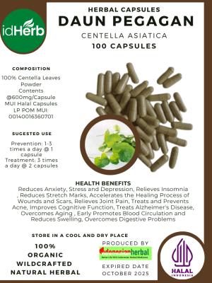 100 Capsule Of Centella Asiatica Daun Pegagan Indian Pennywort Asiatic Pennywort Gotu Kola Spadeleaf @600mg for Health All Fresh Natural Herbs spices Indonesian herb Organic Wild Crafted Free Shipping