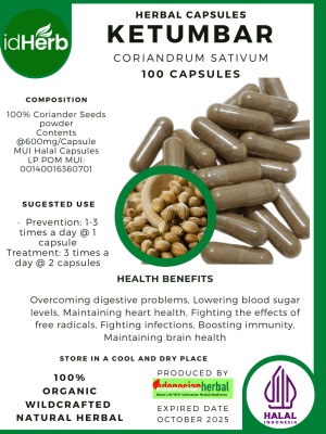 100 Capsule Of Coriandrum sativum, Coriander, Chinese Parsley, Cilantro @600mg for Health All Fresh Natural Herbs spices Indonesian herb Organic Wild Crafted Free Shipping
