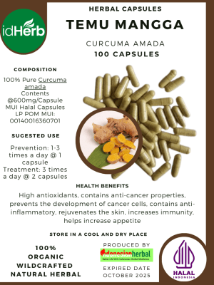 100 Capsule Of Curcuma Amada Temu Mangga Mango Ginger @600mg for Health All Fresh Natural Herbs spices Indonesian herb Organic Wild Crafted Free Shipping