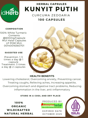 100 Capsule Of Curcuma Zedoaria Kunyit Putih White Turmeric Zedoary @600mg for Health All Fresh Natural Herbs spices Indonesian herb Organic Wild Crafted Free Shipping