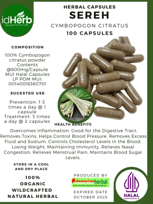 100 Capsule Of Cymbopogon citratus, Lemongrass, Sereh @600mg for Health All Fresh Natural Herbs spices Indonesian herb Organic Wild Crafted Free Shipping