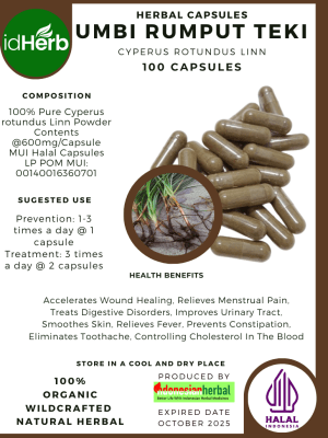 100 Capsule Of Cyperus rotundus Linn, Umbi Rumput Teki Purple nut sedge @600mg for Health All Fresh Natural Herbs spices Indonesian herb Organic Wild Crafted Free Shipping
