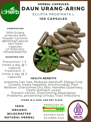 100 Capsule Of Eclipta prostrata L, Daun Urang Aring, False Daisy @600mg for Health All Fresh Natural Herbs spices Indonesian herb Organic Wild Crafted Free Shipping