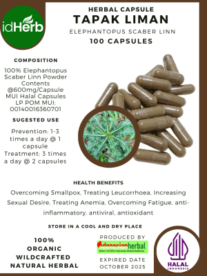 100 Capsule Of Elephantopus Scaber Linn, Tapak Liman, Ironweed @600mg for Health All Fresh Natural Herbs spices Indonesian herb Organic Wild Crafted Free Shipping