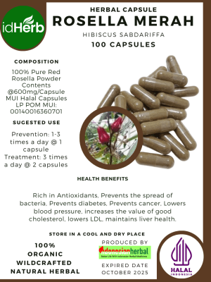 100 Capsule Of Hibiscus sabdariffa, Rosella Merah @600mg for Health All Fresh Natural Herbs spices Indonesian herb Organic Wild Crafted Free Shipping