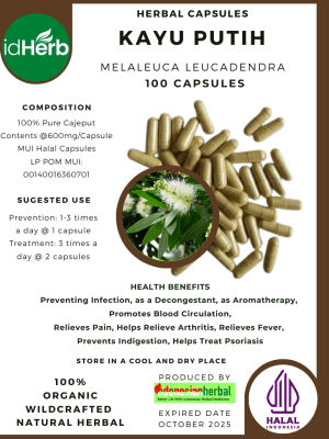 100 Capsule Of Melaleuca leucadendra / Paper Bark Tree / Tea Tree / Cajeput @600mg for Health All Fresh Natural Herbs spices Indonesian herb Organic Wild Crafted Free Shipping
