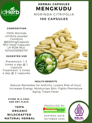 100 Capsule Of Morinda Citrifolia, Mengkudu, Indian Mulberry @600mg for Health All Fresh Natural Herbs spices Indonesian herb Organic Wild Crafted Free Shipping
