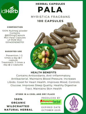 100 Capsule Of Myristica fragrans, Pala, Nutmeg, Mace @600mg for Health All Fresh Natural Herbs spices Indonesian herb Organic Wild Crafted Free Shipping