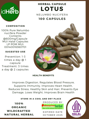 100 Capsule Of Nelumbo nucifera, Lotus @600mg for Health All Fresh Natural Herbs spices Indonesian herb Organic Wild Crafted Free Shipping