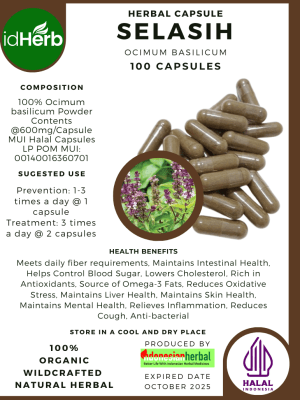 100 Capsule Of Ocimum basilicum, Selasih @600mg for Health All Fresh Natural Herbs spices Indonesian herb Organic Wild Crafted Free Shipping