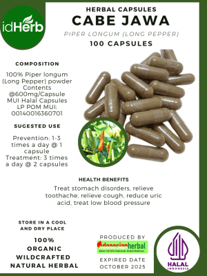 100 Capsule Of Piper longum (Long Pepper) / Indian long pepper or pippali / Cabe Jawa @600mg for Health All Fresh Natural Herbs spices Indonesian herb Organic Wild Crafted Free Shipping