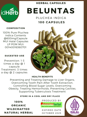 100 Capsule Of Pluchea indica / Beluntas / Indian Camphorweed / Indian Fleabane / Indian Pluchea @600mg for Health All Fresh Natural Herbs spices Indonesian herb Organic Wild Crafted