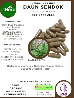 100 Capsule Of Plantago major, Daun sendok Common plantain @600mg for Health All Fresh Natural Herbs spices Indonesian herb Organic Wild Crafted Free Shipping