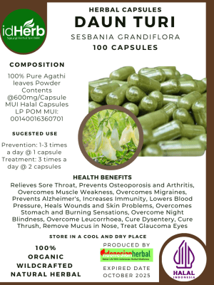 100 Capsule Of Sesbania grandiflora, Daun Turi, Vegetable Hummingbird @600mg for Health All Fresh Natural Herbs spices Indonesian herb Organic Wild Crafted Free Shipping