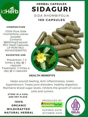 100 Capsule Of Sida rhombifolia, Arrowleaf Sida, Sidaguri @600mg for Health All Fresh Natural Herbs spices Indonesian herb Organic Wild Crafted Free Shipping