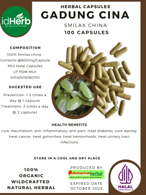100 Capsule Of Smilax china / China Root / Gadung Cina @600mg for Health All Fresh Natural Herbs spices Indonesian herb Organic Wild Crafted Free Shipping
