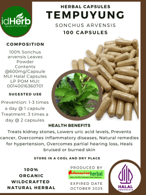 100 Capsule Of Sonchus arvensis, Tempuyung, field milk thistle, field sowthistle @600mg for Health All Fresh Natural Herbs spices Indonesian herb Organic Wild Crafted Free Shipping