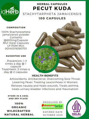 100 Capsule Of Stachytarpheta Jamaicensis, Pecut Kuda, Blue Porterweed, Brazilian tea @600mg for Health All Fresh Natural Herbs spices Indonesian herb Organic Wild Crafted Free Shipping