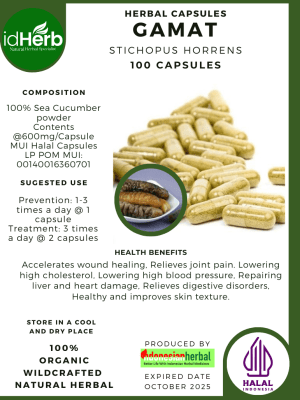 100 Capsule Of Stichopus Horrens, Selenka’s sea cucumber, Sea Cucumber, Gamat @600mg for Health All Fresh Natural Herbs spices Indonesian herb Organic Wild Crafted Free Shipping