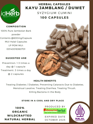 100 Capsule Of Syzygium Cumini, Java Plum, Jambolan, Duwet @600mg for Health All Fresh Natural Herbs spices Indonesian herb Organic Wild Crafted Free Shipping
