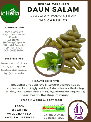100 Capsule Of Syzygium polyanthum, Daun Salam, Bay Leaves @600mg for Health All Fresh Natural Herbs spices Indonesian herb Organic Wild Crafted Free Shipping