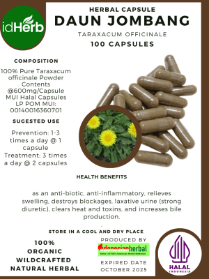 100 Capsule Of Taraxacum officinale, Daun jombang @600mg for Health All Fresh Natural Herbs spices Indonesian herb Organic Wild Crafted Free Shipping