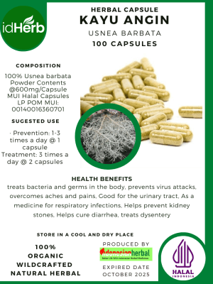 100 Capsule Of Usnea barbata, Old-man’s-beard, Kayu Angin @600mg for Health All Fresh Natural Herbs spices Indonesian herb Organic Wild Crafted Free Shipping