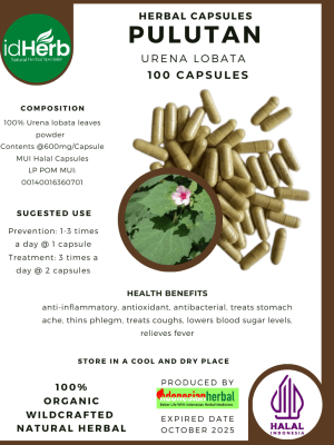 100 Capsule Of Urena lobata / Pulutan / Caesarweed / Congo jute @600mg for Health All Fresh Natural Herbs spices Indonesian herb Organic Wild Crafted Free Shipping