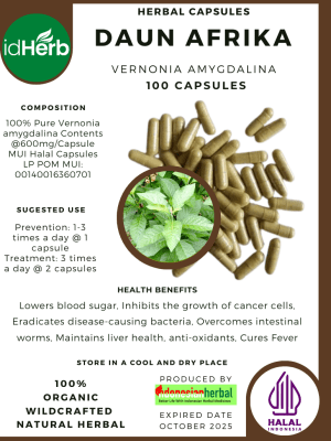100 Capsule Of Vernonia amygdalina Daun Afrika Bitter Leafs @600mg for Health All Fresh Natural Herbs spices Indonesian herb Organic Wild Crafted