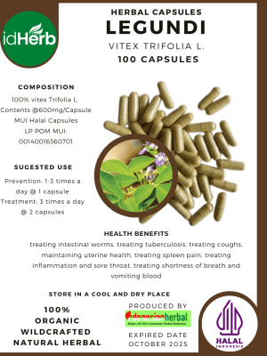 100 Capsule Of Vitex Trifolia L. / Common Blue Vitex / Legundi @600mg for Health All Fresh Natural Herbs spices Indonesian herb Organic Wild Crafted Free Shipping