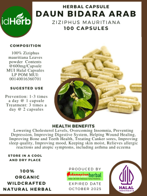 100 Capsule Of Ziziphus Mauritiana / Bidara Arab / Indian Jujube / Cottony Jujube @600mg for Health All Fresh Natural Herbs spices Indonesian herb Organic Wild Crafted