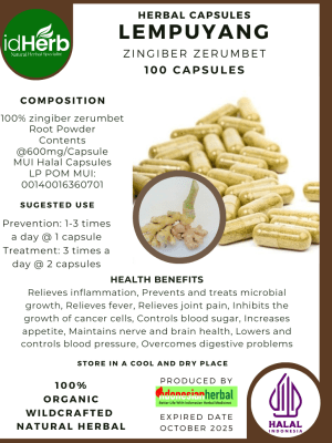 100 Capsule Of Zingiber zerumbet, Lempuyang, Pinecone ginger, Shampoo ginger or Wild ginger @600mg for Health All Fresh Natural Herbs spices Indonesian herb Organic Wild Crafted Free Shipping