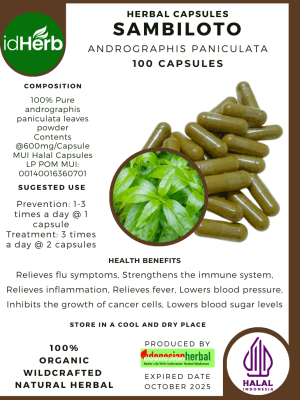 100 Capsule Of Andrographis Paniculata, Bitterweed, King of Bitters, Creat, Green Chireta @600mg for Health All Fresh Natural Herbs spices Indonesian herb Organic Wild Crafted Free Shipping