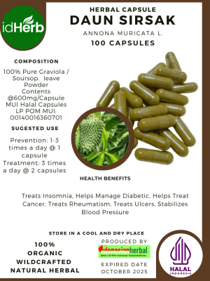 100 Capsule Of Annona muricata L, Daun sirsak Soursop Graviola @600mg for Health All Fresh Natural Herbs spices Indonesian herb Organic Wild Crafted Free Shipping