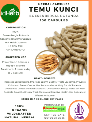 100 Capsule Of Boesenbergia Rotunda, Fingerroot, Chinese ginger, Chinese key, Temu Kunci @600mg for Health All Fresh Natural Herbs spices Indonesian herb Organic Wild Crafted Free Shipping