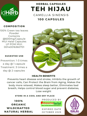 100 Capsule Of Camellia Sinensis, Green Tea, Teh Hijau @600mg for Health All Fresh Natural Herbs spices Indonesian herb Organic Wild Crafted Free Shipping