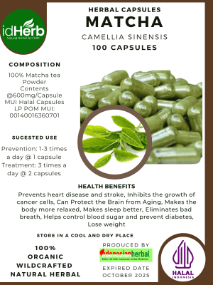 100 Capsule Of Camellia Sinensis, Matcha @600mg for Health All Fresh Natural Herbs spices Indonesian herb Organic Wild Crafted Free Shipping