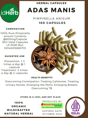 100 Capsule Of Pimpinella anisum Adas Manis aniseed @600mg for Health All Fresh Natural Herbs spices Indonesian herb Organic Wild Crafted