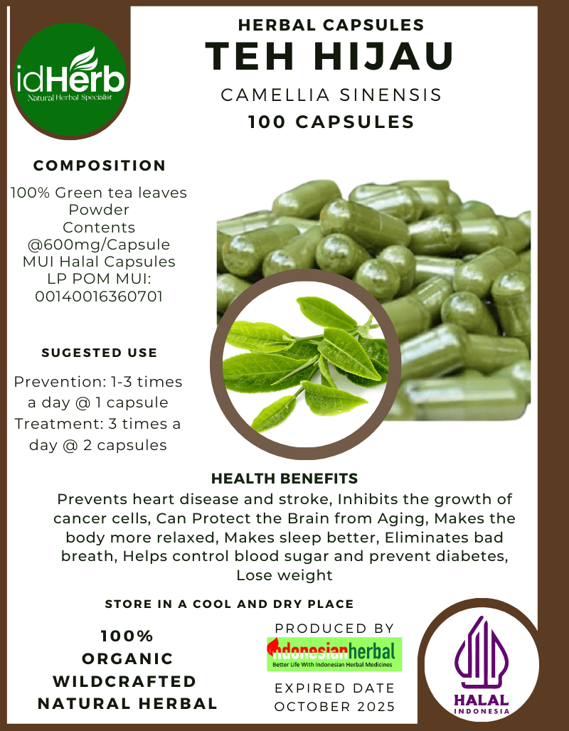 100 Capsule Of Camellia Sinensis, Green Tea, Teh Hijau @600mg for Health All Fresh Natural Herbs spices Indonesian herb Organic Wild Crafted Free Shipping