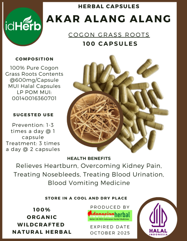 100 Capsule Of Cogon Grass Roots / Akar Alang-alang / Imperata Cylindrica @600mg for Health All Fresh Natural Herbs spices Indonesian herb Organic Wild Crafted