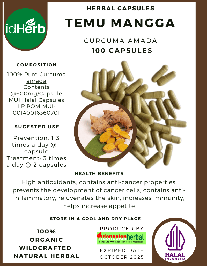 100 Capsule Of Curcuma Amada Temu Mangga Mango Ginger @600mg for Health All Fresh Natural Herbs spices Indonesian herb Organic Wild Crafted