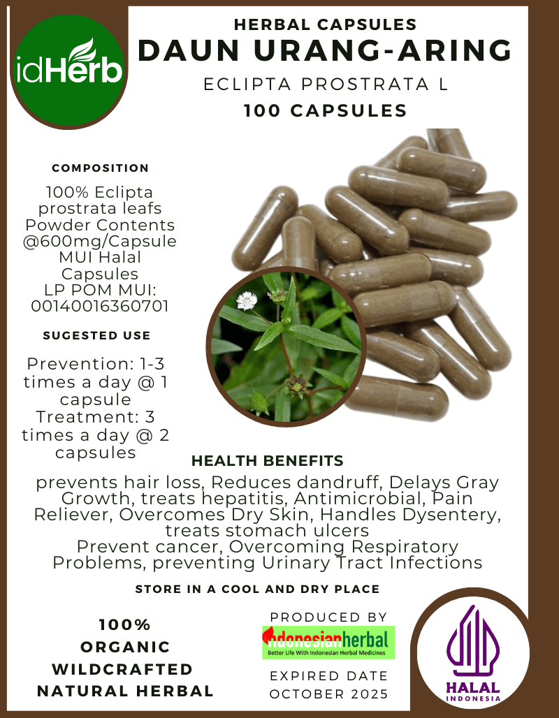 100 Capsule Of Eclipta prostrata L, Daun Urang Aring, False Daisy @600mg for Health All Fresh Natural Herbs spices Indonesian herb Organic Wild Crafted Free Shipping