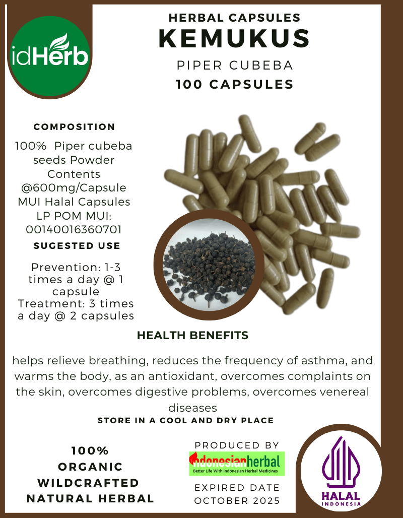 100 Capsule Of Piper Cubeba Kemukus Cubeb Tailed Pepper@600mg for Health All Fresh Natural Herbs spices Indonesian herb Organic Wild Crafted Free Shipping