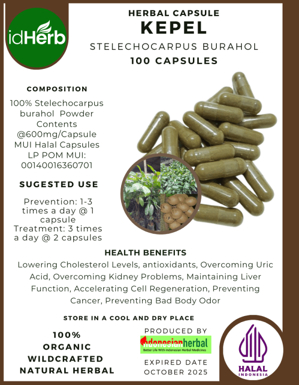 100 Capsule Of Stelechocarpus Burahol, Kepel, Kepel Apple, Burahol, Keppel Tree@600mg for Health All Fresh Natural Herbs spices Indonesian herb Organic Wild Crafted Free Shipping