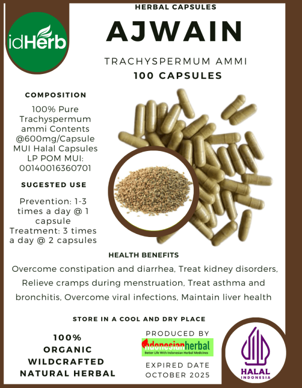 100 Capsule Of Trachyspermum ammi Ajwain Caraway @600mg for Health All Fresh Natural Herbs spices Indonesian herb Organic Wild Crafted